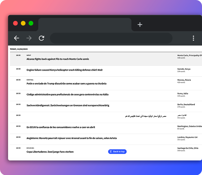 In times of war as in times of peace, our journalists are constantly striving to meet the demands of news professionals in terms of speed and reliability. AFP's text services cover all forms of information, from breaking news to magazines, reports, interviews and portraits.