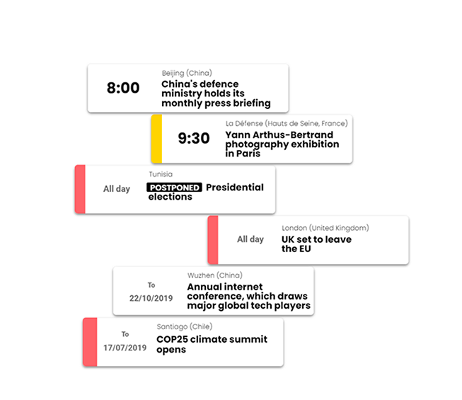 Browse all international, economic, sport and culture events entered by our vast network of journalists.