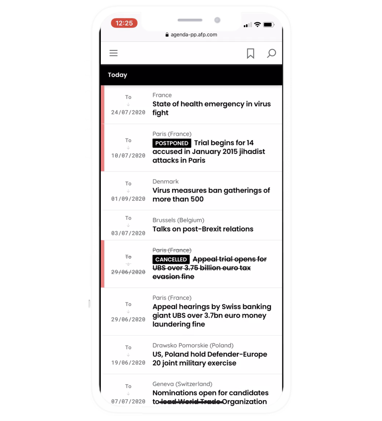 A clear layout and useful features. AFP Agenda is designed for media and corporate clients.