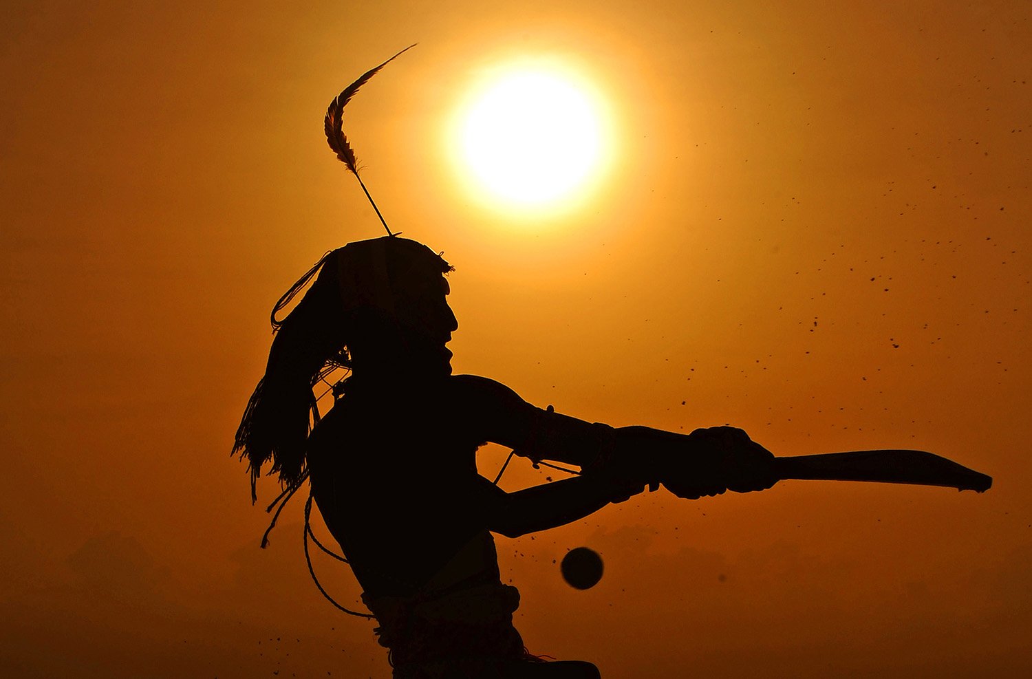 The jockeys -- mostly local fanners -- balance precariously on wooden planks behind a pair of rampaging bulls as they hurtle down a dusty race course.