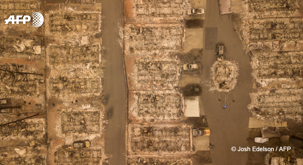 15/11/2018 – PARADISE, CALIFORNIE – Ce cliché aérien intitulé « California Burning » photographié par Josh Edelson après la fin des incendies ayant ravagés la Californie en novembre dernier, montre les restes d’un quartier ayant été consumé par les flammes.