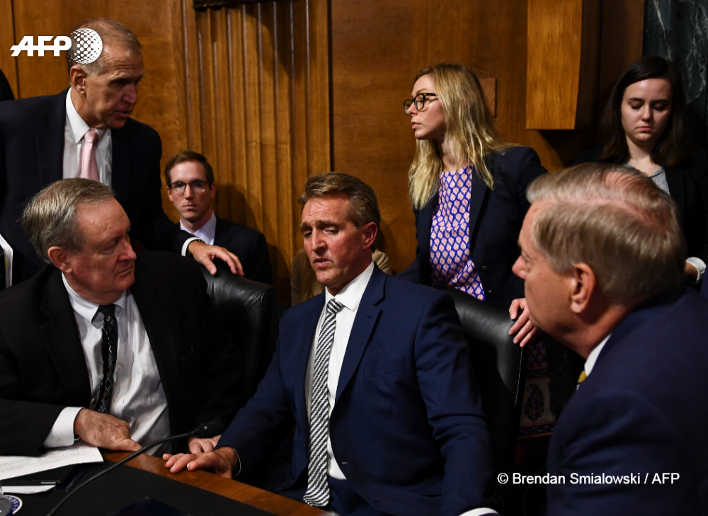 28/09/2018 - WASHINGTON DC - Brendan Smialowski a été récompensé pour son cliché intitulé « Drama » montrant le sénateur Jeff Flake, après son audition devant la Commission judiciaire du Sénat, au Capitole.