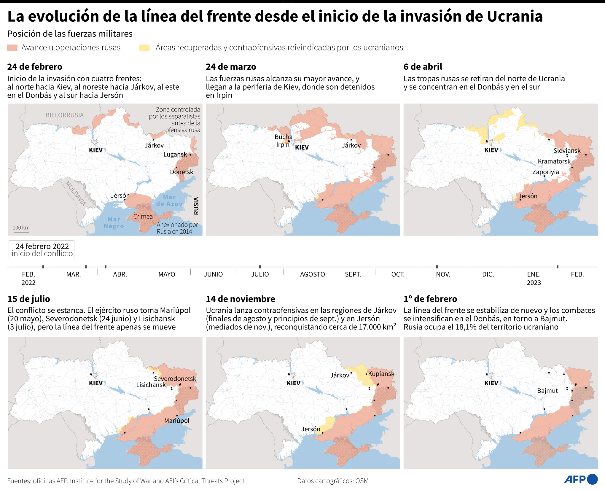 Hace exactamente un año, AFP entró en directo en vídeo desde la plaza Maidán de Kiev y anunció al mundo el inicio de la ofensiva rusa contra Ucrania. Desde entonces, la agencia ha desplegado y pretende mantener recursos sin precedentes para cubrir esta guerra en el corazón de Europa y sus consecuencias en la vida cotidiana de los ucranianos, los rusos y el resto del mundo.