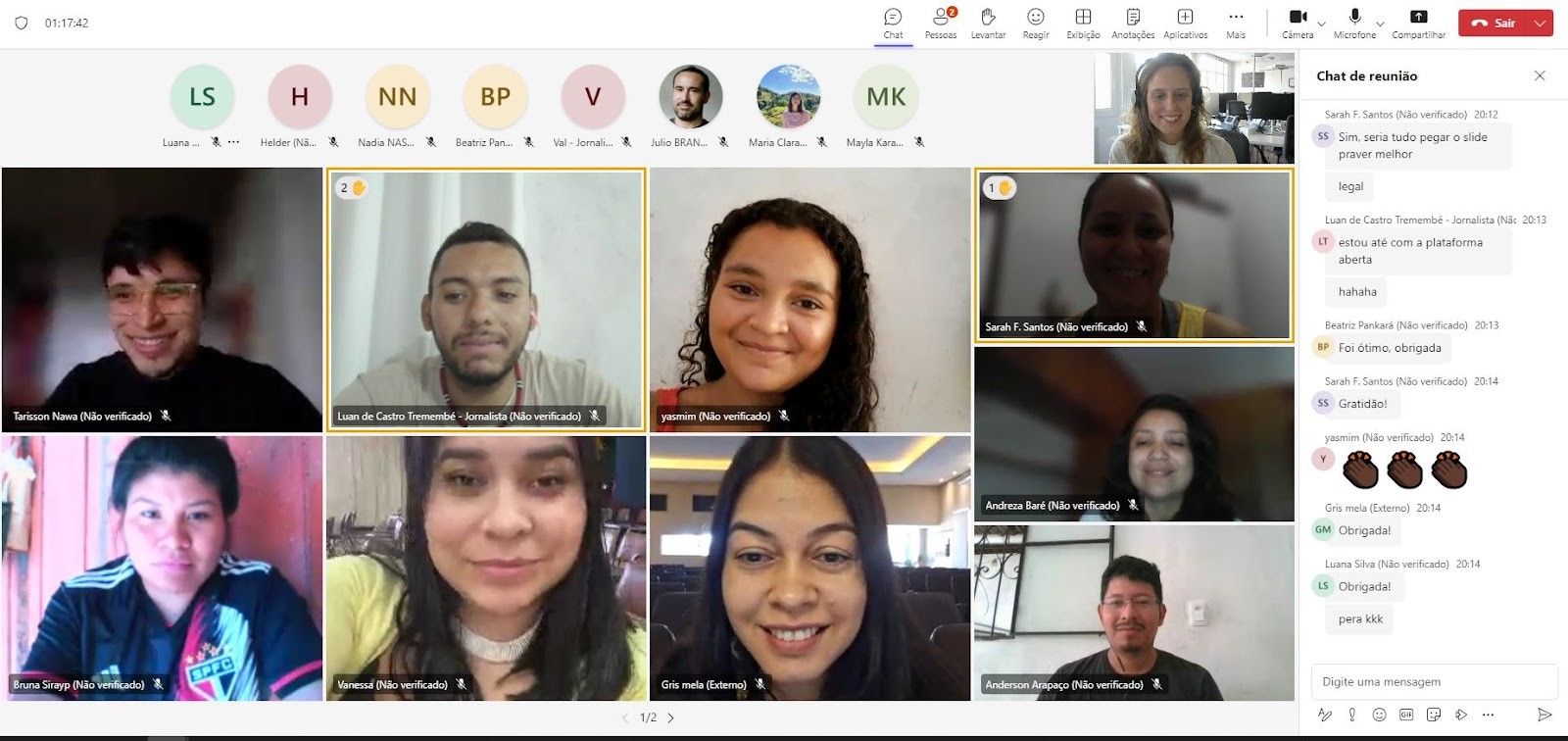 L'AFP a organisé un atelier d'investigation numérique ce lundi 10 juin avec des organisations de groupes autochtones brésiliens travaillant dans le journalisme ou la communication, notamment Abrinjor (Articulação Brasileira de Indígenas Jornalistas) et Coiab (Coordenação das Organizações Indígenas da Amazônia Brasileira). Environ 30 journalistes représentant plus de 20 peuples différents ont participé à la session en ligne.
